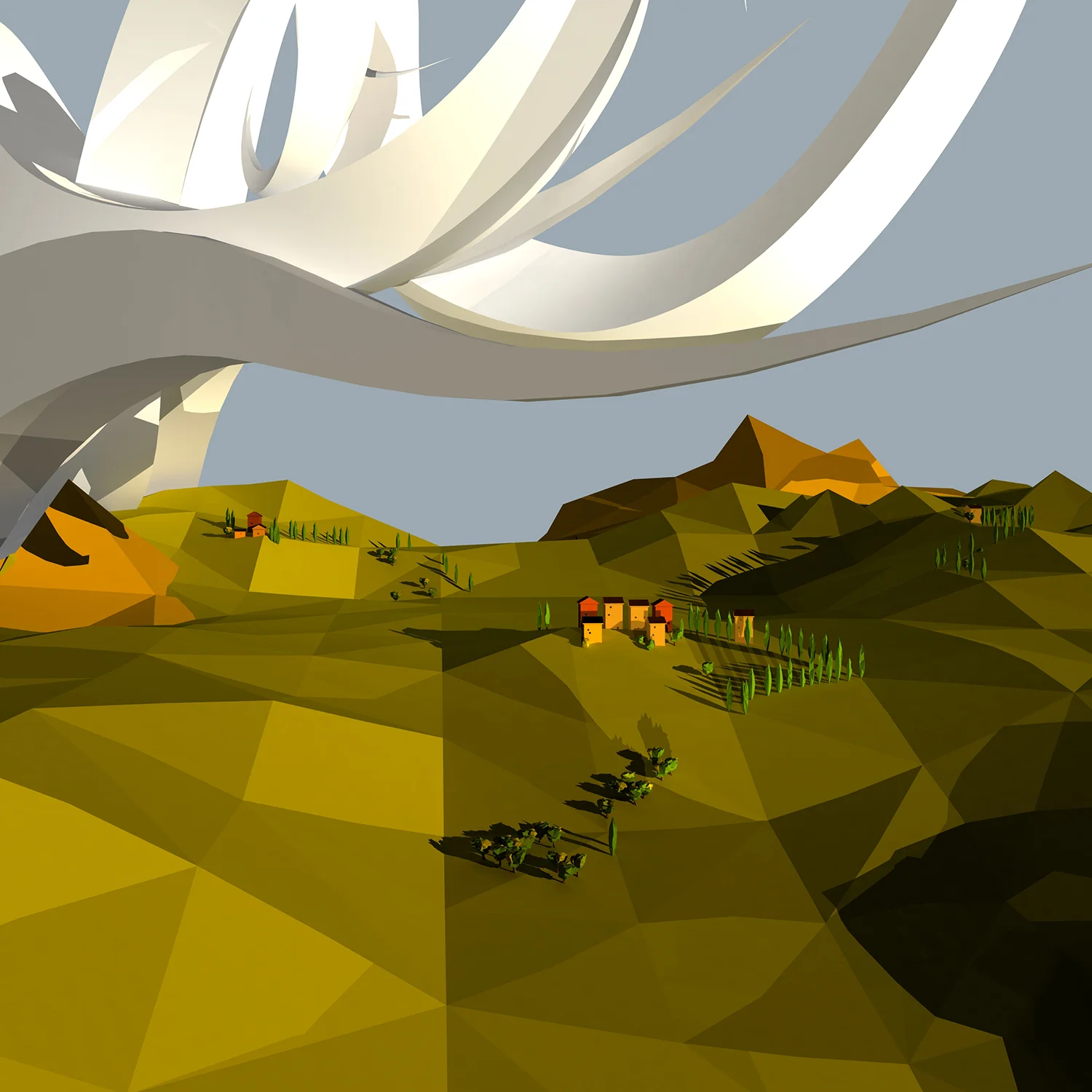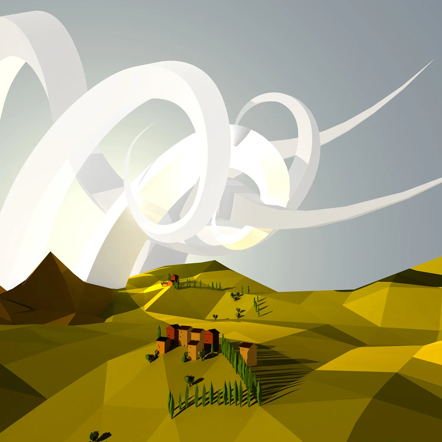 This series is based on my memories of biking through Tuscany. They are digital sketches. These images were initially created in 3D rendering software. All the elements of the composition; clouds, houses, and trees were built virtually. Then I essentially, “took pictures” of the them, rendered them, and made some adjustments in other software.
